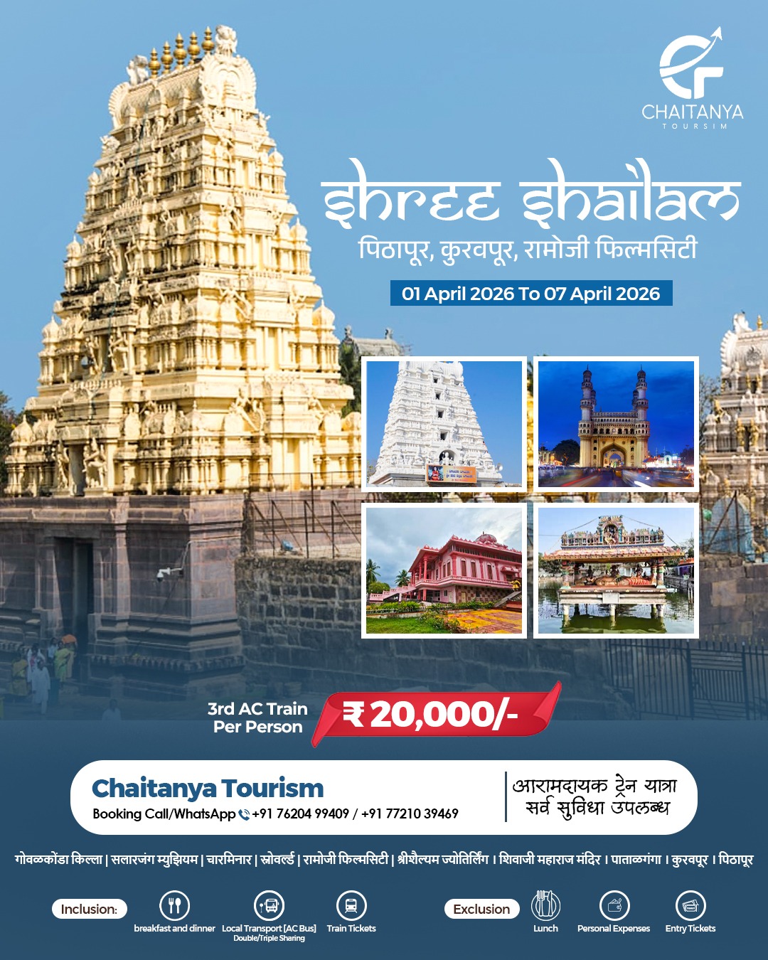 Discover breathtaking destinations across India and the globe. With 25+ years of expertise, Chaitanya Tourism crafts journeys that become lifelong memories.